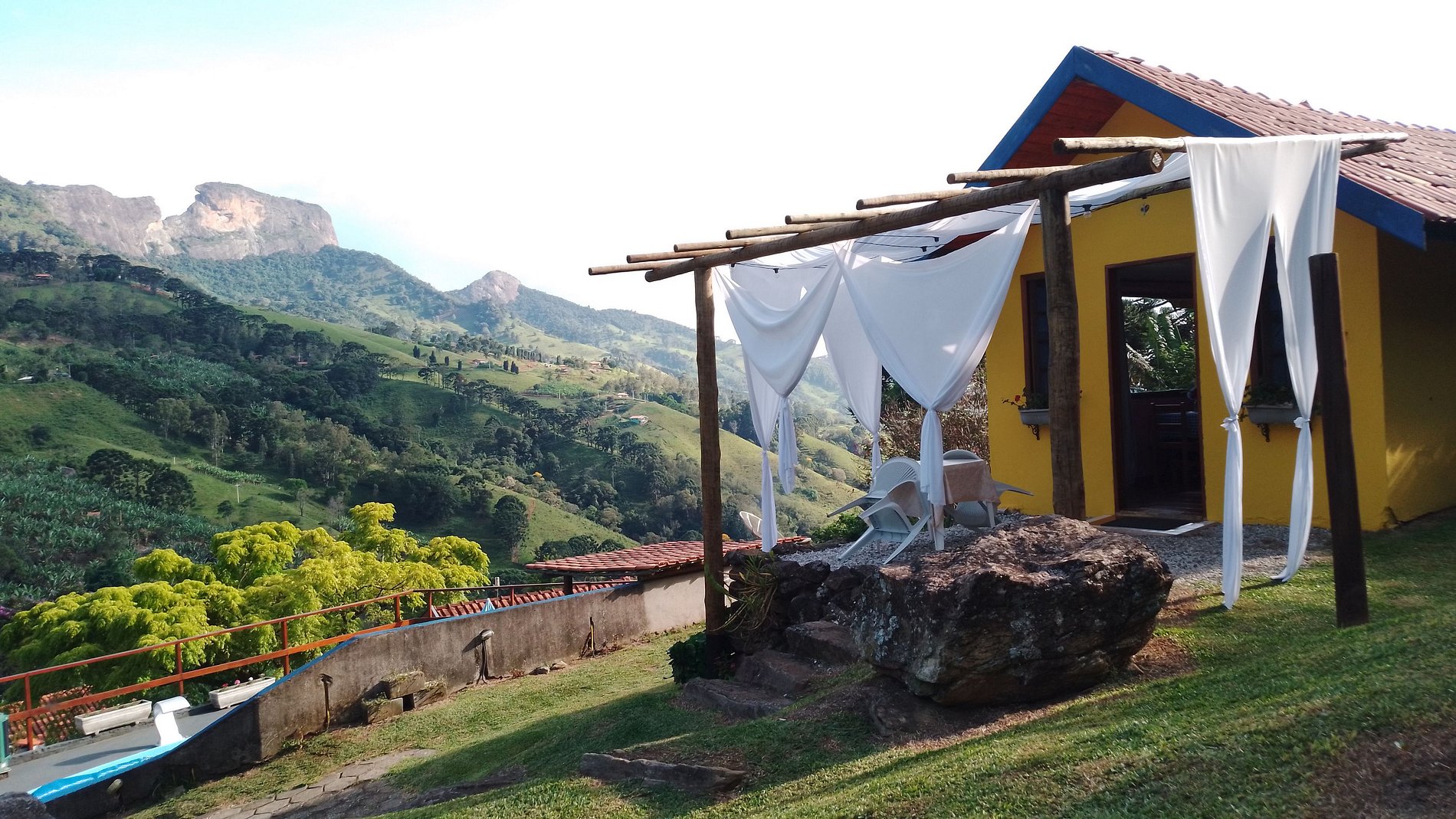 chale suit com uma linda vista para pedra do bau